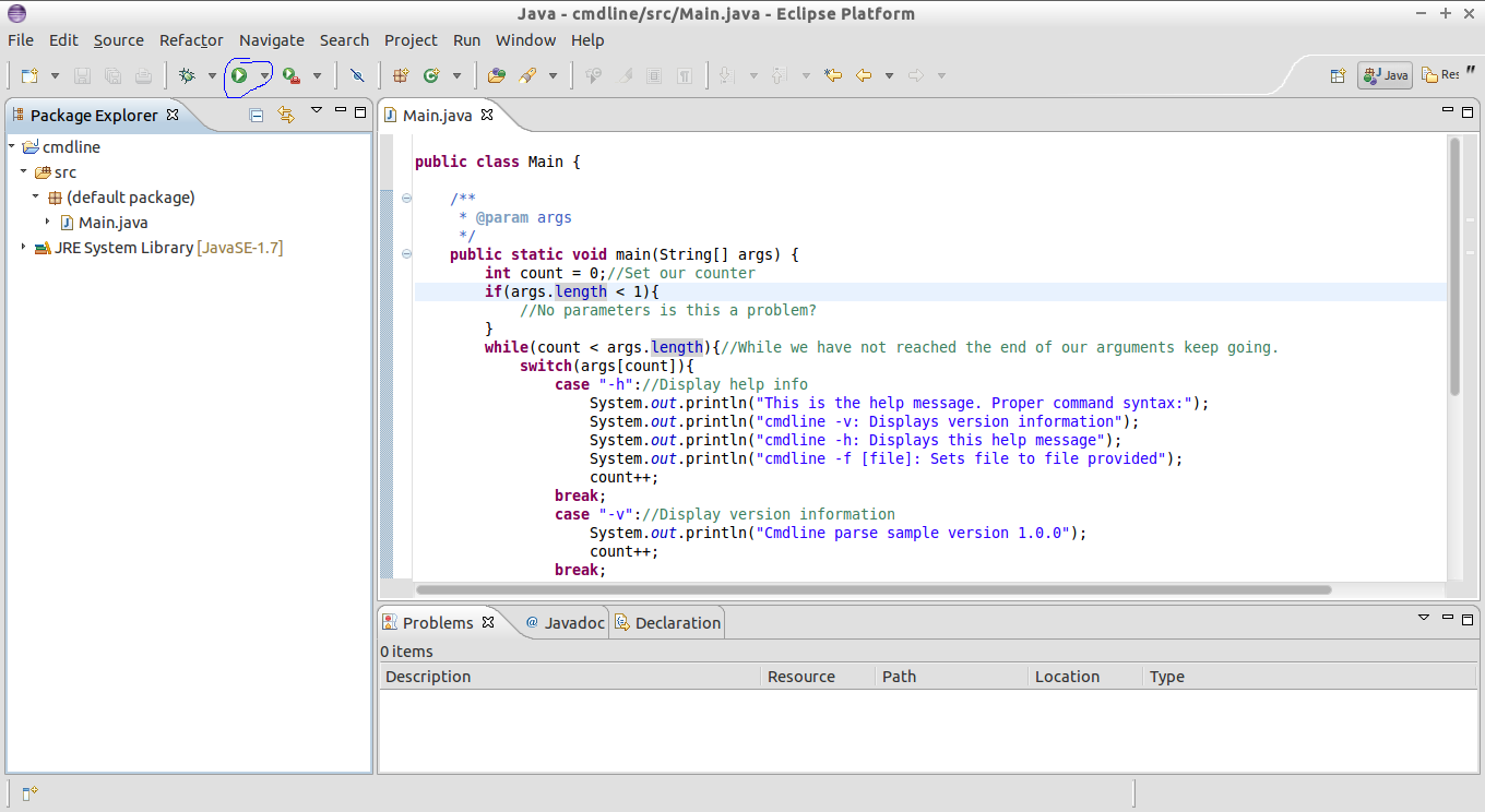 3.3. Using Command Line Parameters in Eclipse¶